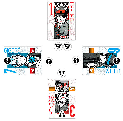 - キャプテン(1)とジゴロ(7)が同陣営、ヒプノシス(3)とレフティ(6)が同陣営です。